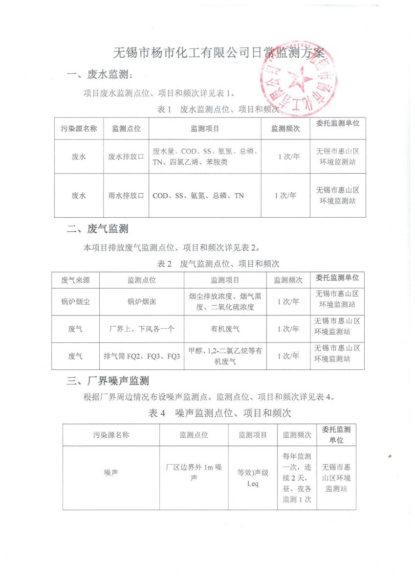 無(wú)錫市楊市化工有限公司日常監(jiān)測(cè)方案